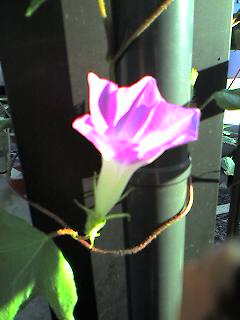 今年の春先のこと、我が愛する太陽のお母様・おりんさまより、「命の種」をいただきました。白血病で幼くして亡くなった少年が育てた朝顔の種が、いろいろな所で花を咲かせ、その何粒かを貰い受けたのです。我が家の猫の額ほどの小さな植え込み部分に、主人が種を蒔きました。本当なら7月の声を聞くと同時に、一つ、二つと花を咲かせていいはずなのに、何故か全く蕾がつかない…弦だけは元気が良かったのですが、でもやはりどことなく細い感じがしたので、少々心配していました。また、今年は、梅雨明けも遅く、天候の具合も悪かったんですね。きっとそういう悪条件が重なり、開花の時期を遅らせていたんでしょう。