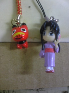 ↑「あかべこ」と薫ちゃん。携帯につけてます。今日、あんまり仕事が暇だったので、机の上で遊んでました(笑)